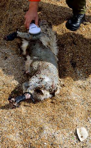 muerto en la playa boirense de A Gavoteira. El can tenía las patas